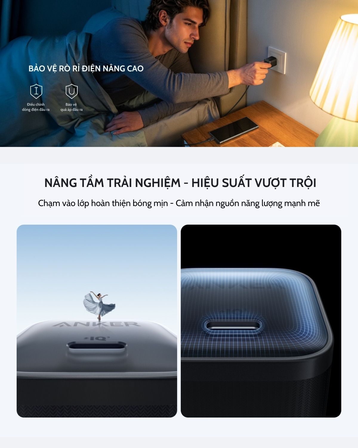 - MultiProtect™: Hệ thống bảo vệ nhiều lớp của Anker bao gồm chống quá dòng, quá áp, chập mạch, quá nhiệt, giúp bạn yên tâm cắm sạc qua đêm mà không lo cháy nổ hay hư hại thiết bị.